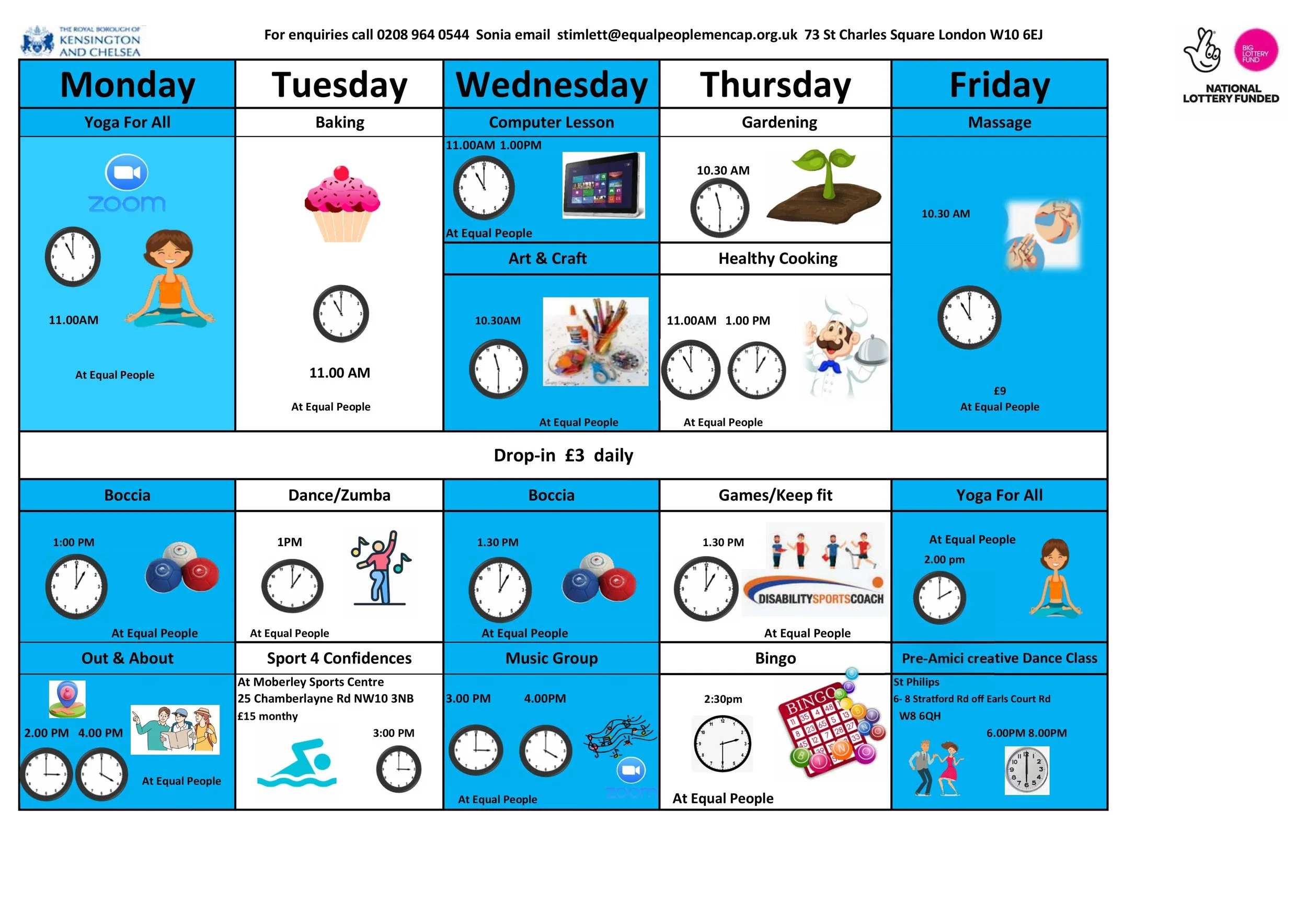 Equal People Mencap offers a wide variety of supported training, groups, activities and social groups throughout the week at our Resource Centre in Ladbroke Grove and out in the community.